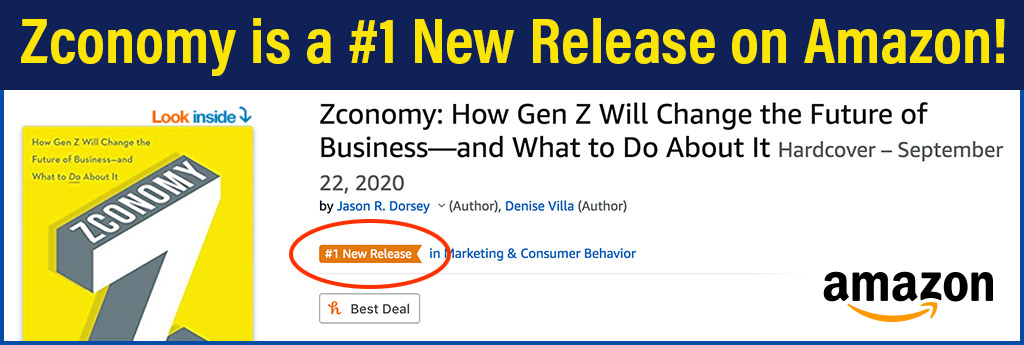 The Center for Generational Kinetics, led by Dr. Denise Villa, CEO, and Jason Dorsey, President, have been researching and writing a new book about Gen Z for more than two years. This breakthrough new book, Zconomy, speaks to the heart of CGK’s mission to separate generational myth from truth with data and unlock the tremendous potential of this fast-emerging generation. Zconomy is filled with Gen Z research discoveries, firsthand Gen Z stories, and the candid perspective needed in this time of generational change, challenge, and uncertainty. And now, we have exciting news to share: Zconomy is a national bestseller!