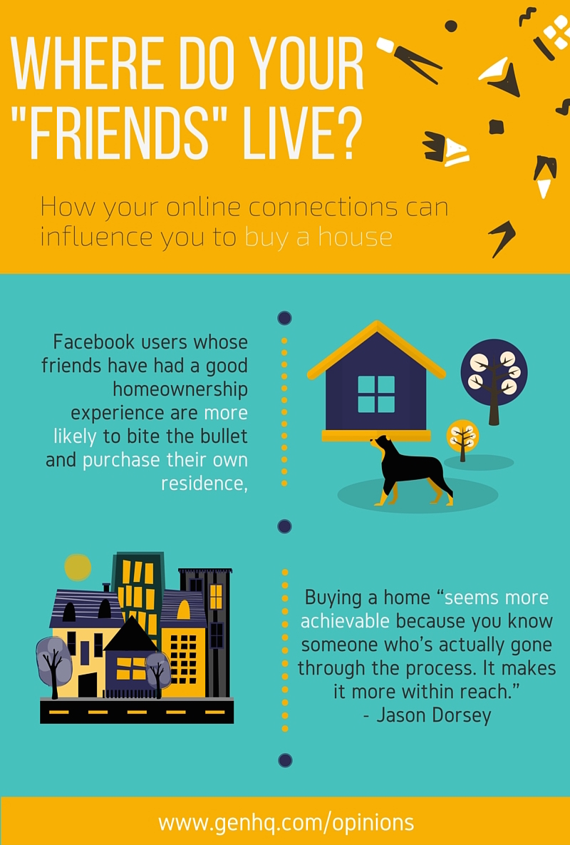 According to the National Bureau of Economic Research, Facebook users whose friends have had a good homeownership experience are more likely to make the plunge and purchase their own residence.