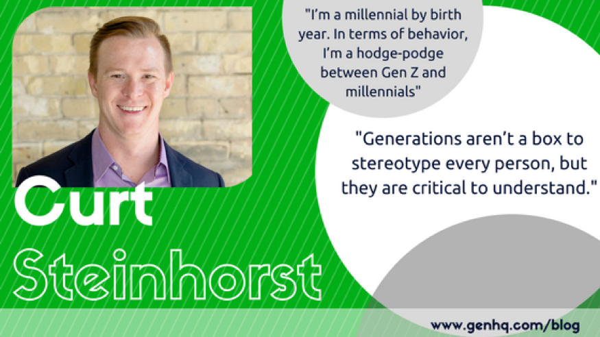 I’m a millennial by birth year. In terms of behavior, I’m a hodge-podge between Gen Z and Millennials. I have a lot of Gen Z in me; I’m entrepreneurial, fiscally conservative, and realize that the desired outcome requires hard work and time. I’m connected, make purchasing decisions through online research, and value collaboration like a classic Millennial.